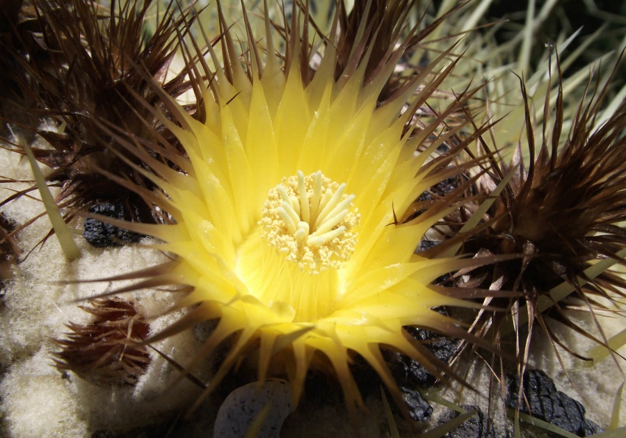 金琥仙人球主要栖息地是在墨西哥中部海拔1400米至1900米之间的荒漠地带,荒漠土主要由火山岩和钙质土壤组成。有两个较为集中的分布地(克雷塔罗和萨卡 卡斯),分布范围较广但生长范围狭小,群落碎片化。