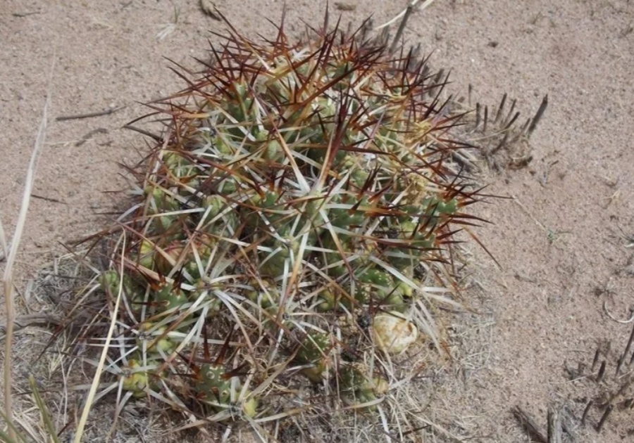 描述:姬武藏野是一种小型仙人掌,形成低矮、蔓延、关节坚固、半球状的丛生。姬武藏野像是东云球节(Maihueniopsis darwinii)的较小和较少刺的版本,其茎呈椭圆形至长椭圆形,直立或伏地生长;有着胡萝卜样的主根,茎是关节球状至卵形,尖锐的刺在栽培植物中通常 小,暗灰褐色,花朵是浅黄色,果实球形,无刺,成熟时变绿变黄并干燥。