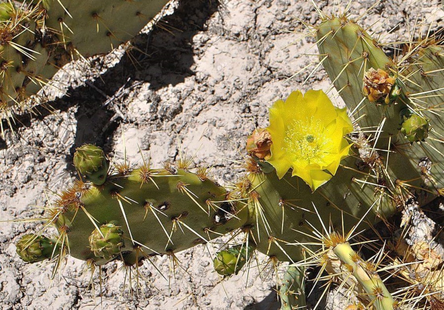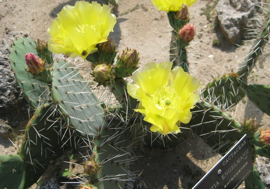 花:花为黄色,有时呈橙色至粉红色和红色。它们的体长可达8厘米,直径可达4厘米。每朵花可持续一天,有些恩格尔曼仙人掌的花到下午 会变成橙色;