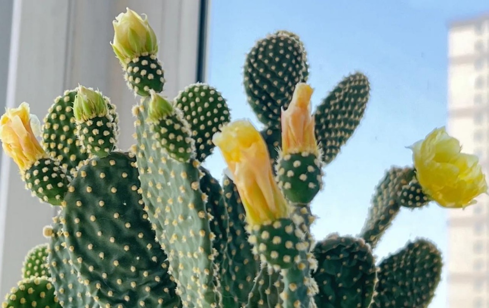 物候:春夏季节,Opuntia microdasys 'Yellow'可能会带来明亮的黄色花朵,衬托其金色刺,