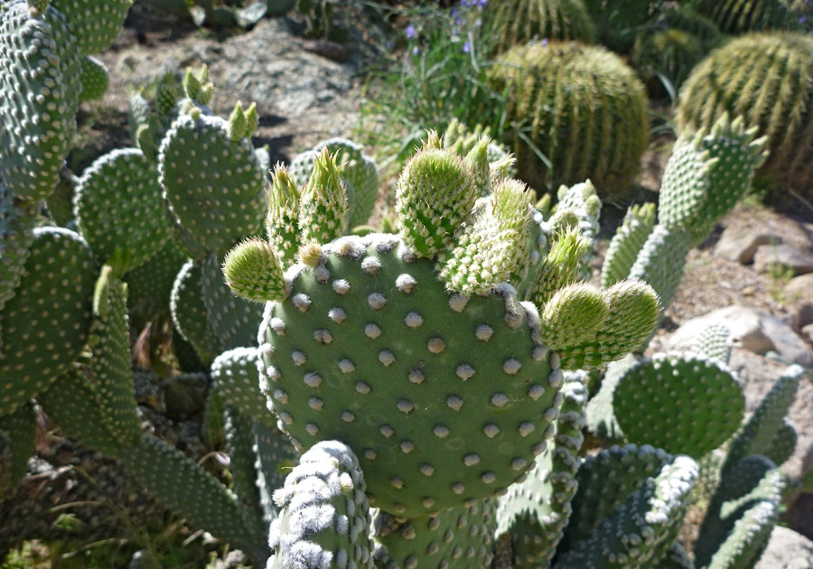 白花爱抚(Opuntia microdasys cv. Caress)无大刺,无刺毛,触感温和。
