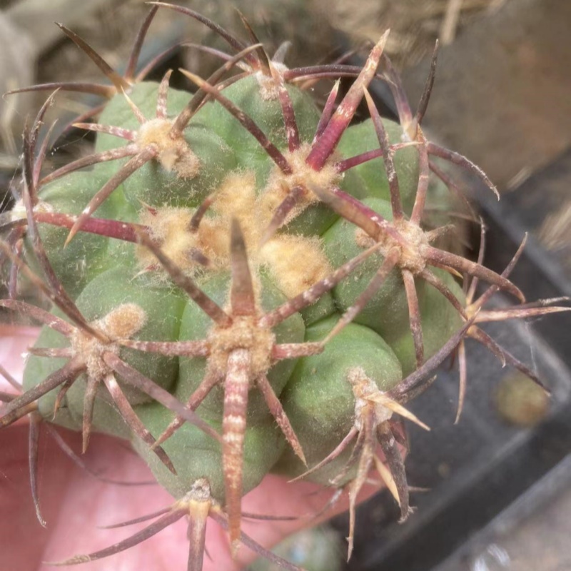 瘤玉属大红鹰仙人球Thelocactus heterochromus也叫红鹰仙人球,是瘤玉属比较经典的品种。大红鹰仙人球看起来和大统领差不多区别在于大红鹰中间的刺比大统领要粗,刺座上没有什么凹槽,而大统领中刺细,且刺座上有凹槽。大红鹰仙人球球体比较大,疣凸也较大,中刺长且有点扁,新刺紫红色, 漂亮。大红鹰仙人球花开的 漂亮且大,花朵直径4-8cm,颜色绢粉红,于5-7月开花。