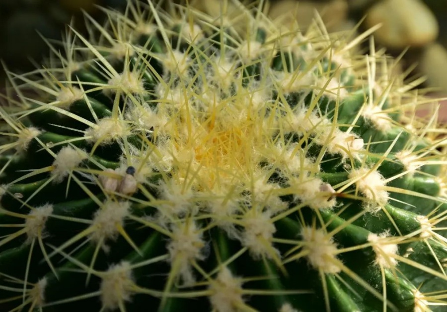 金琥仙人球顶部密生一圈金黄色的绒毛