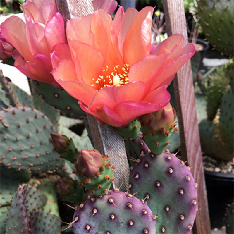描述:小丽塔Opuntia 'Baby Rita'是O. santa-rita 和 O. basilaris 之间的杂交品种,小丽塔仙人掌是一种紧凑、耐寒的杂交仙人掌,以其令人惊叹的季节性颜色变化和小尺寸而闻名,叶子呈蓝色、酒红色、绿色和紫色。在春季和夏季,粉红色的花朵出现。吸引蜜蜂和蜂鸟,使其成为传粉者花园的 补充。在充足的阳光下生长良好,冬天喜欢干燥,小丽塔在低温时掌片会变成紫色。小丽塔仙人掌在疏松、砂砾、贫瘠、岩石和排水良好的土壤中生长良好。如果您正在寻找耐热和抗黄萎病的东西,这是一个不错的选择。小丽塔与其他“Rita”仙人掌相比,该品种仍然相当紧凑。
