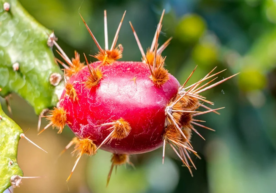 果子:猪耳掌果实球形到梨形或长圆形,肉质,有黄色,桔红色,红色,或紫色,直径3-4厘米(1.2-1.6英寸),具有明显的暗褐色钩毛簇。