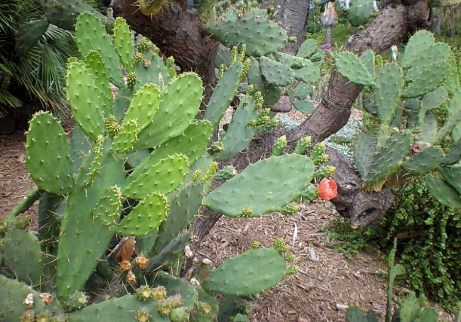 形态:沙尘团扇是一种强壮的灌木品种,它可以长成 4.5米高的仙人掌树,掌片繁多,生长迅速。这种仙人掌在很小的植株上也会开出大量鲜红色的花朵。