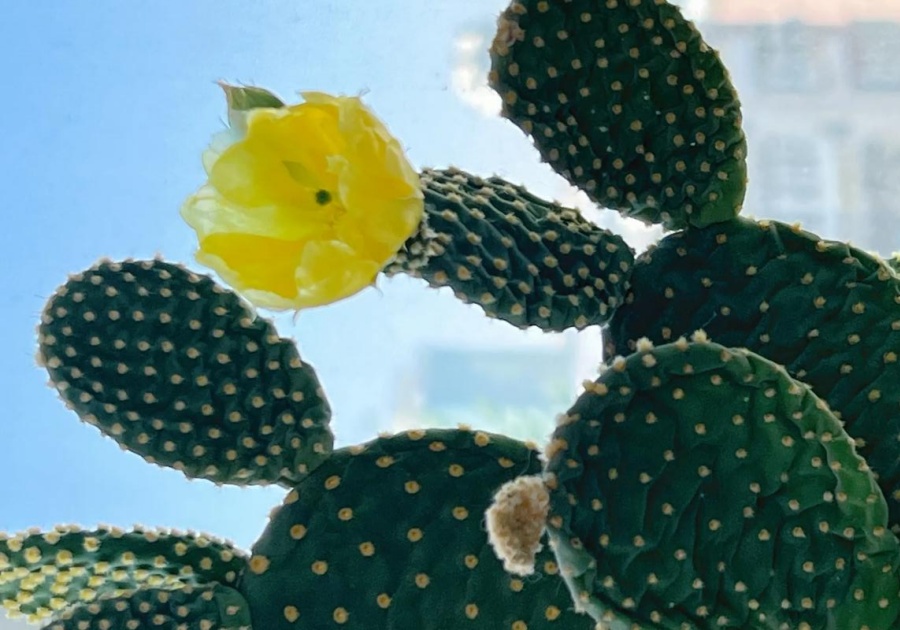 物候:春夏季节,Opuntia microdasys 'Yellow'可能会带来明亮的黄色花朵,衬托其金色刺,